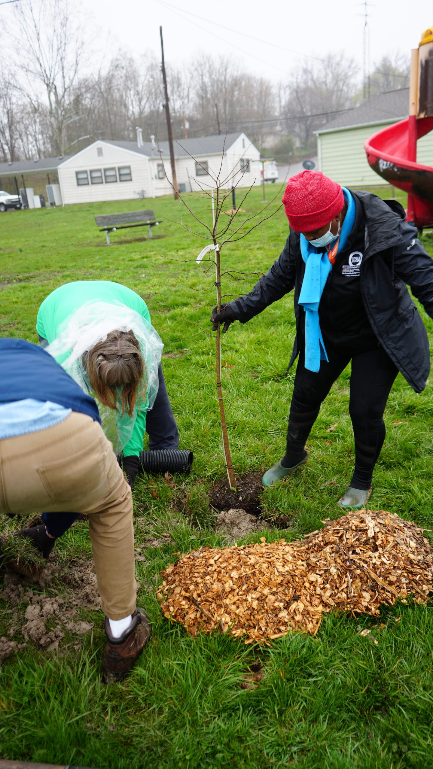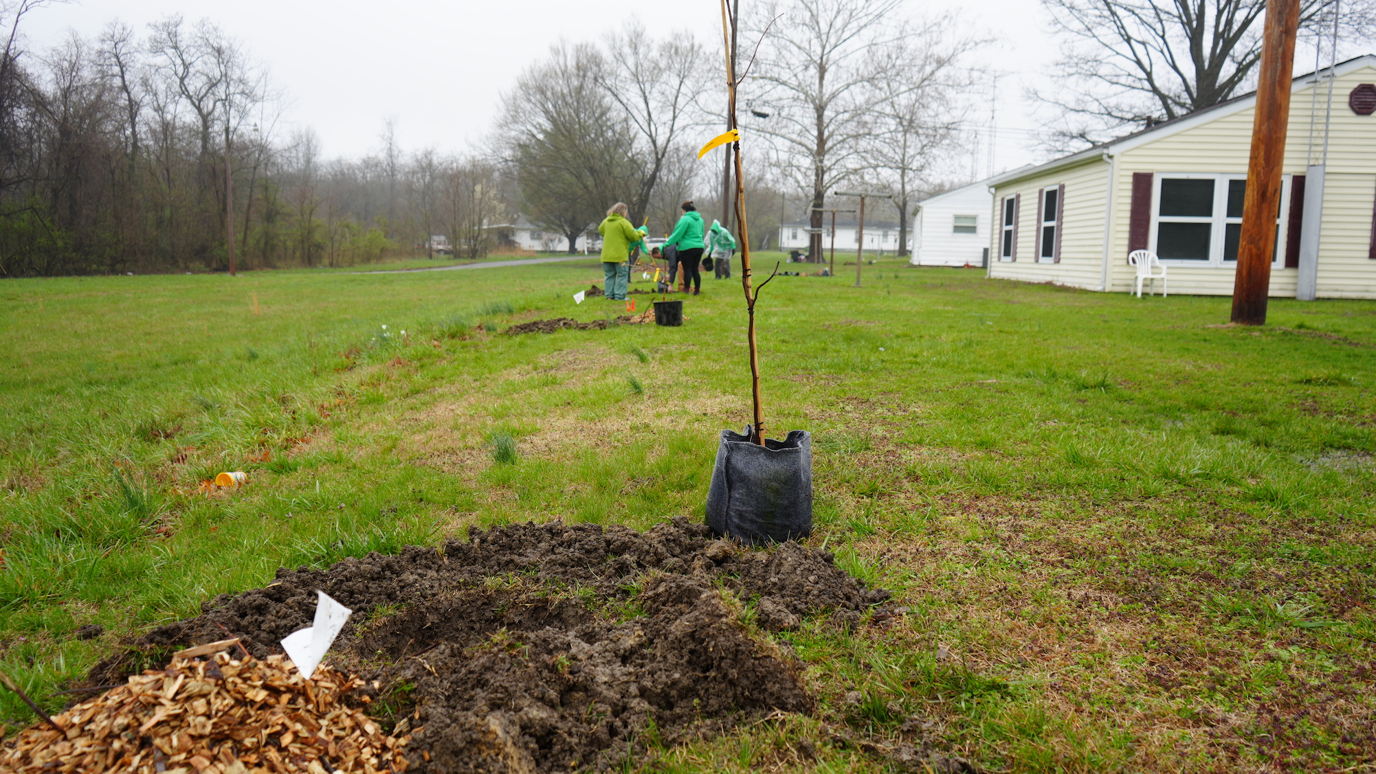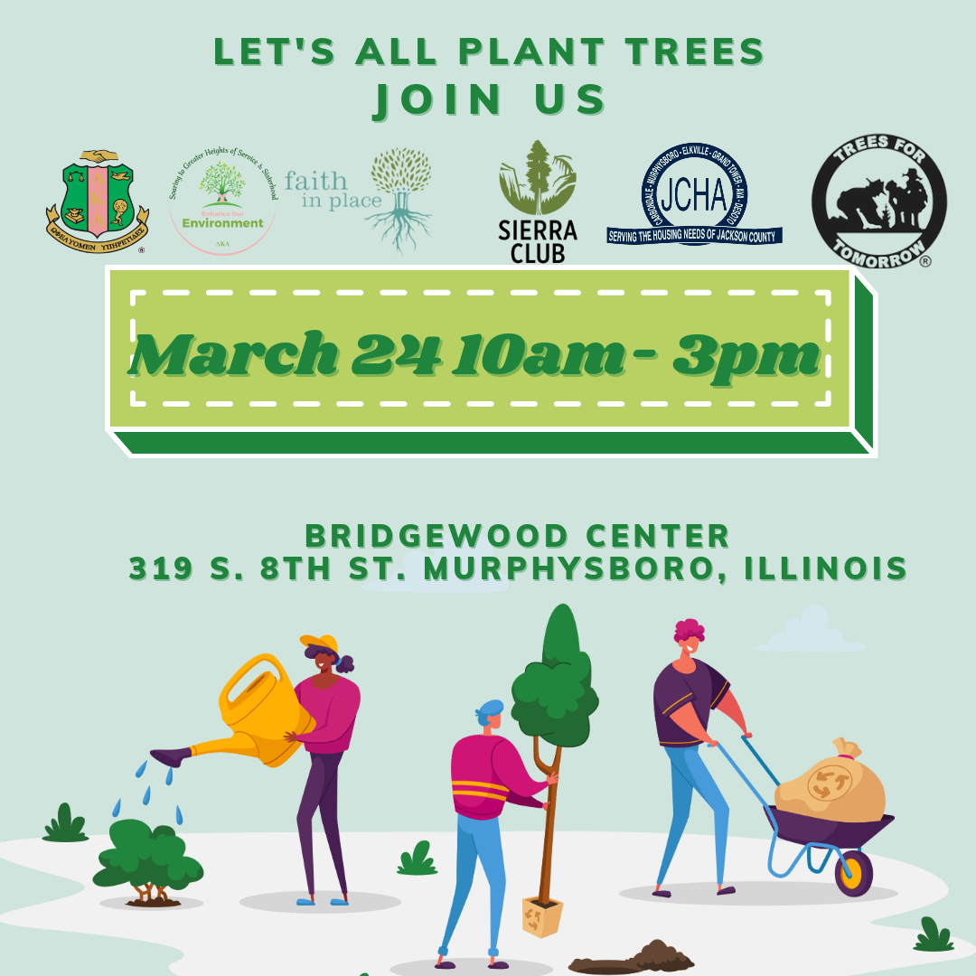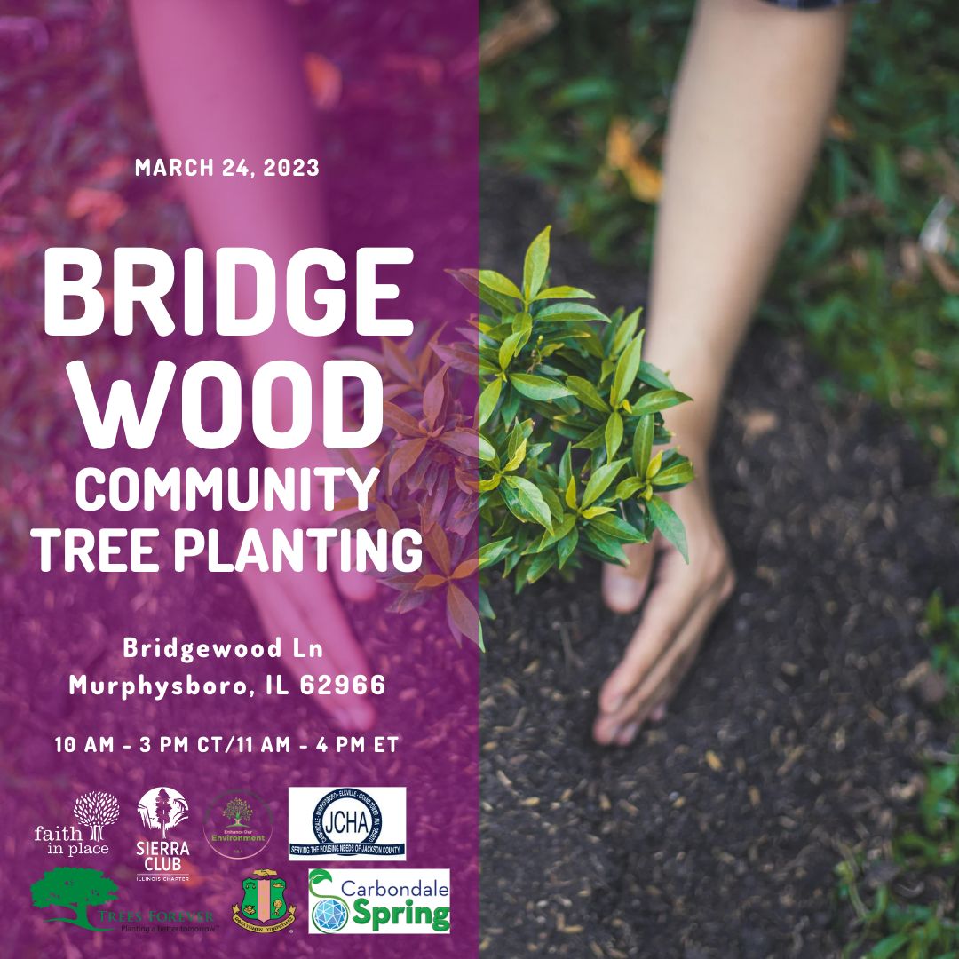Jane Cogie of the Shawnee Group Sierra Club, Wade Halva of Faith in Place, and Marilyn Tipton of Carbondale Food Autonomy came together through the Tree Equity Group of the Downstate Caucus of the Clean Jobs Coalition with the intention of improving tree equity in southern Illinois. They collaborated with the Jackson County Housing Authority to apply for a Trees Forever RRR grant to plant at the Bridgewood public housing community in Murphysboro.