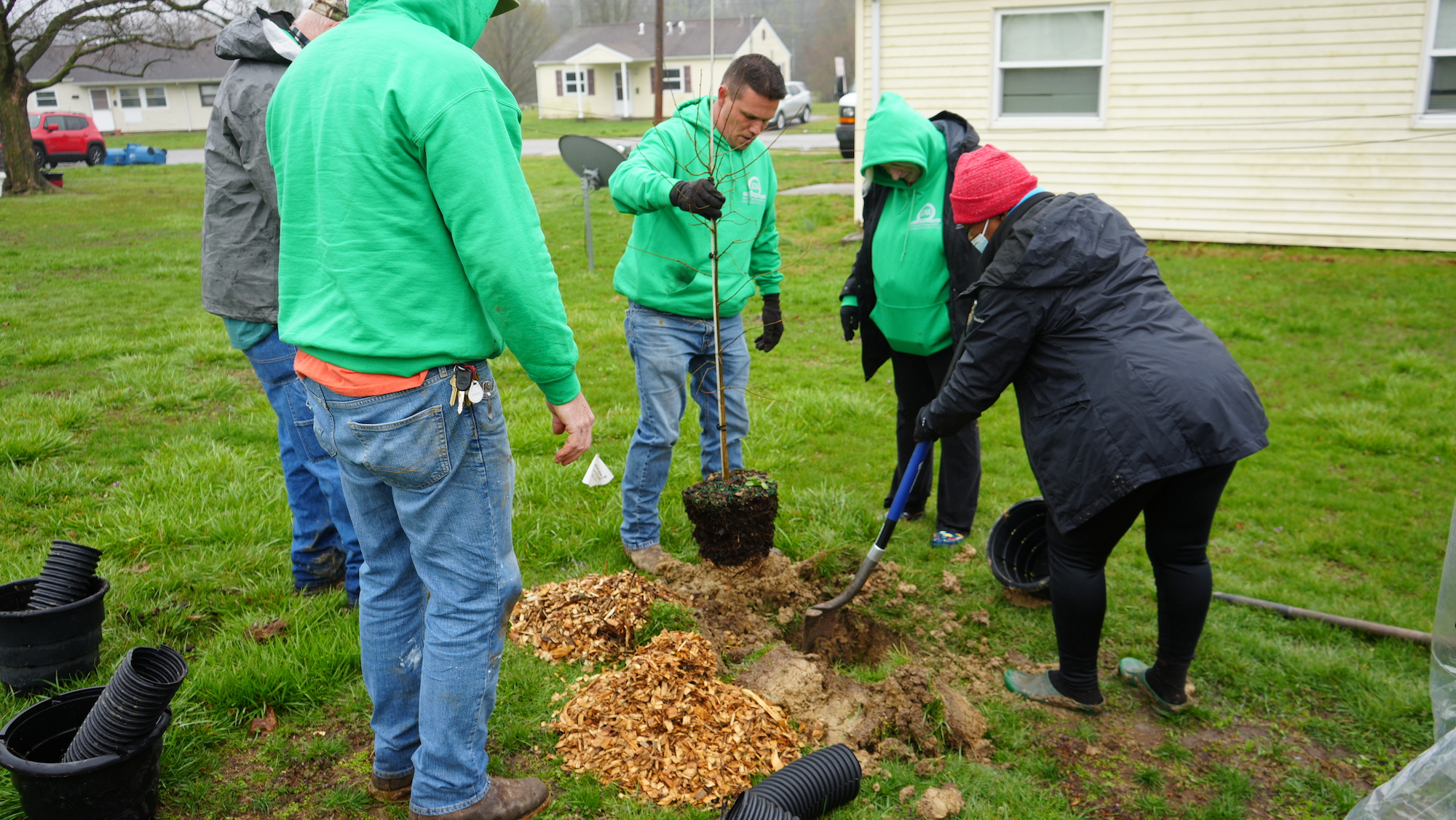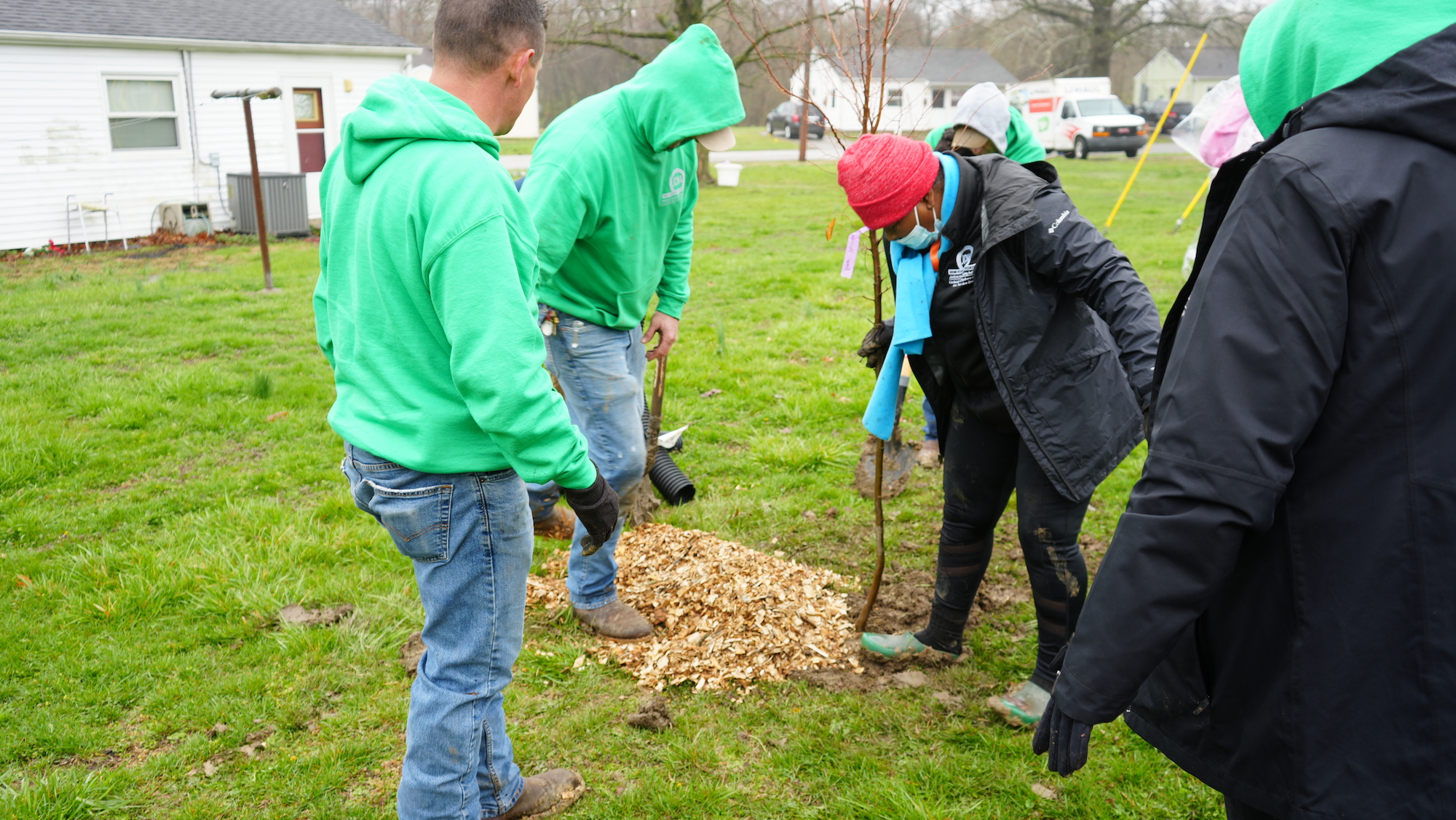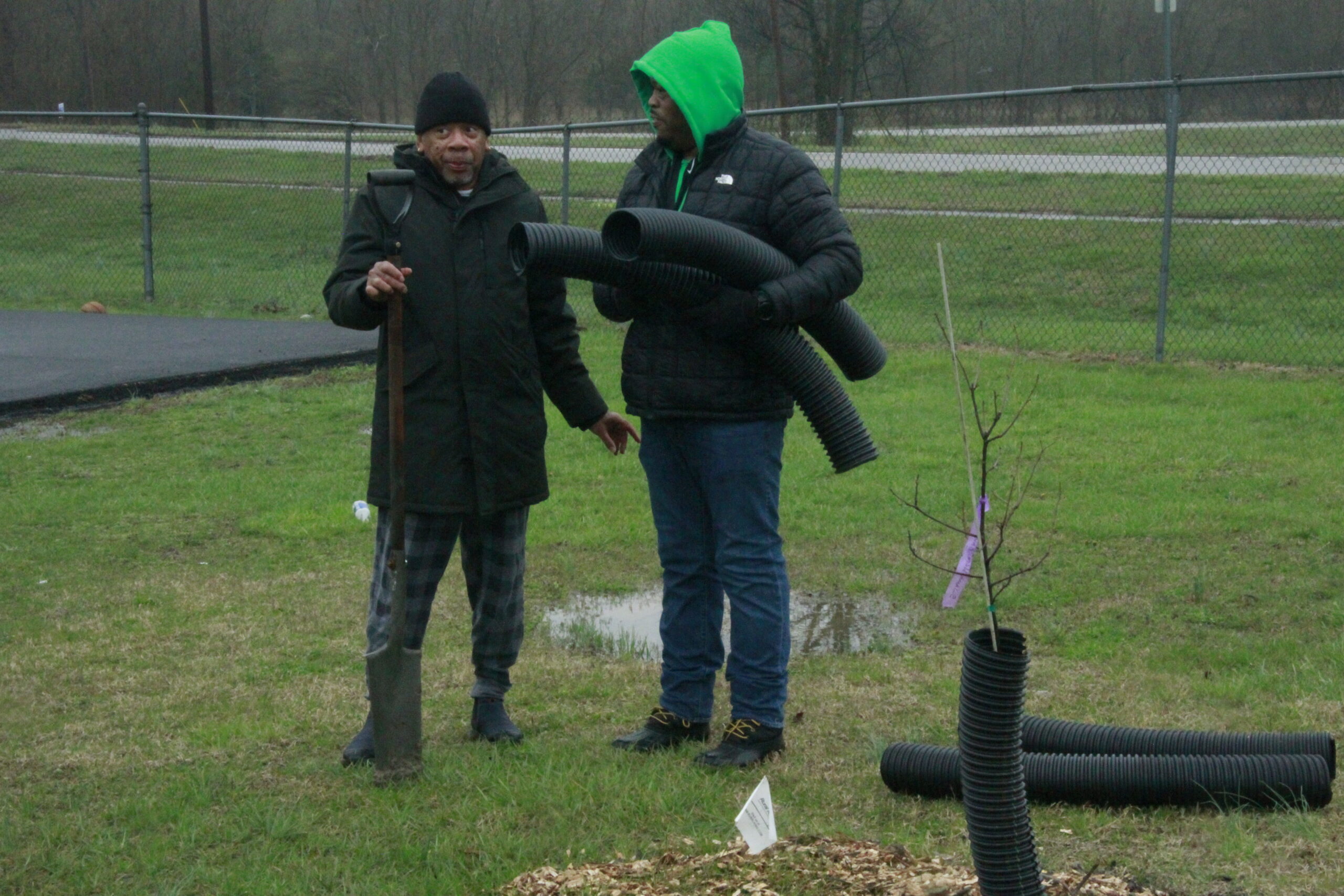 Jane Cogie of the Shawnee Group Sierra Club, Wade Halva of Faith in Place, and Marilyn Tipton of Carbondale Food Autonomy came together through the Tree Equity Group of the Downstate Caucus of the Clean Jobs Coalition with the intention of improving tree equity in southern Illinois. They collaborated with the Jackson County Housing Authority to apply for a Trees Forever RRR grant to plant at the Bridgewood public housing community in Murphysboro.