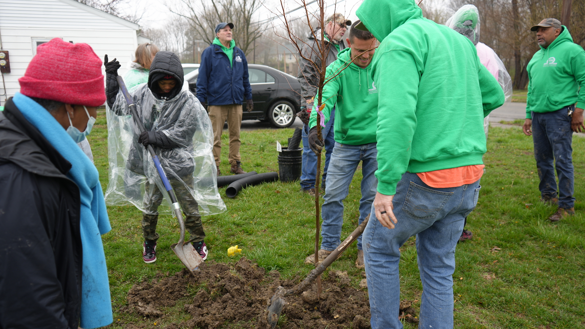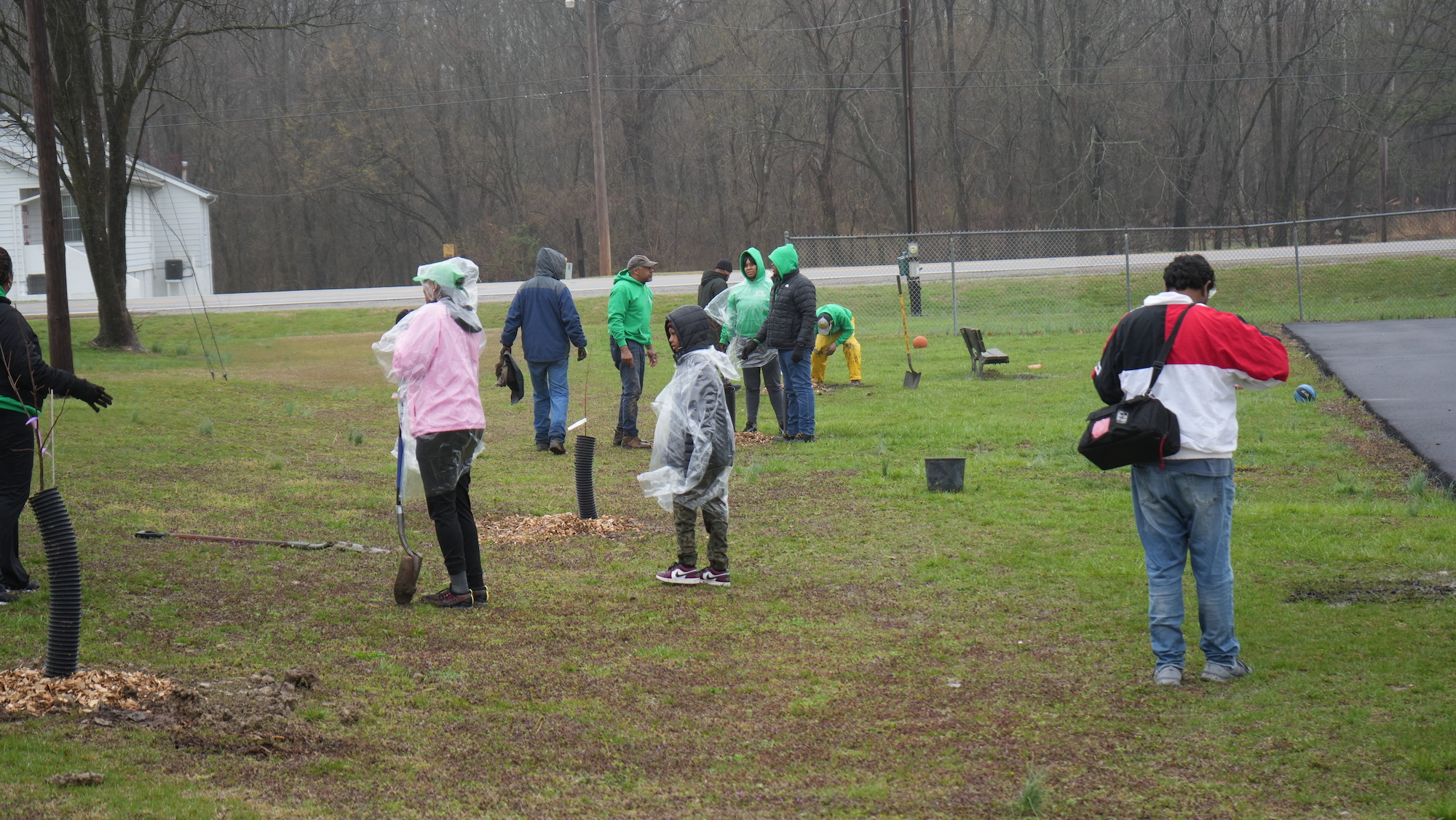 They were awarded the grant in the fall of 2022 and held the tree planting on March 24, 2023. In total, over thirty people braved rough weather to plant 45 trees, plus donated native shrubs.